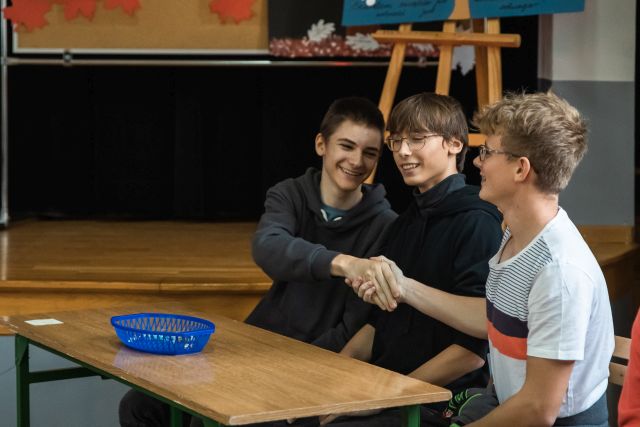 Uczniowie klas pierwszych swój czas świętowania mieli w piątek, kiedy odbyła się kolejna edycja konkursu „Moja Niepodległa”. To autorski pomysł nauczycieli historii Zespołu Szkół nr 2 im. Księcia Pawła Karola Sanguszki. Jest to impreza, której głównym celem jest zabawa w duchu patriotycznym. Niepodległość oznacza bowiem wolność, a wolność zawsze wiąże się z radością. Dlatego podczas konkursu „Moja Niepodległa” nie brakowało żartów, a uśmiech nie schodził z twarzy uczestników. Były jednak również podniosłe momenty. Takim była godz. 11.11, kiedy zgromadzeni uczniowie uroczyście odśpiewali hymn.