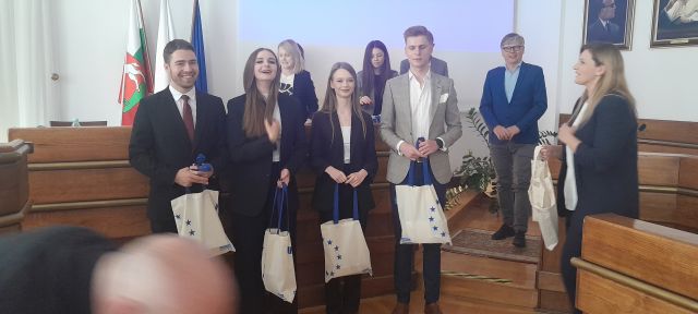 Drużyna naszej szkoły w składzie Hubert Nowakowski ( 3P) , Patryk Kubera (3B), Zuzanna Demucha i Julia Piekarczyk (2 P) wcieliła się w rolę Grupy Postępowego Sojuszu Socjalistów i Demokratów (PSSD) i miała za zadanie bronić tezy, że wydatki na kulturę są zbyt małe. Po ciekawej, merytorycznej debacie nasza drużyna zajęła 2 miejsce.