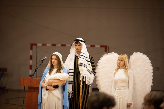 W okresie świątecznym w naszej szkole odbyły się wyjątkowe jasełka pt. „Sprawa sądowa”. Przedstawienie miało oryginalną formę – historię narodzin Jezusa ukazano jako symboliczny proces sądowy. Na scenie pojawili się m.in. sędzia, prokurator oraz obrońca, którzy prowadzili rozprawę, skłaniając widzów do refleksji nad sensem dobra i zła, miłości, sprawiedliwości oraz odpowiedzialności człowieka za drugiego człowieka.