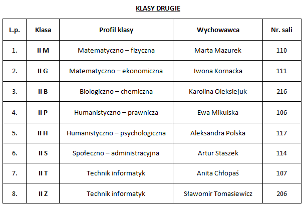 2. Klasy drugie i trzecie LO oraz klasy drugie, trzecie i czwarte TZ – 9.00
