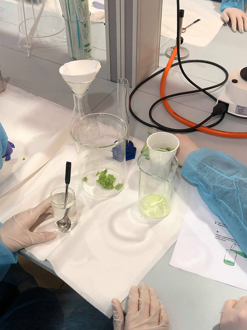 Podczas zajęć uczniowie poszerzyli swoją wiedzę w zakresie genetyki. Przeprowadzili doświadczenie polegające na wyizolowaniu DNA z groszku. Po rozdrobnieniu groszku należało wymieszać go z roztworem płynu do mycia naczyń, aby następnie po podgrzaniu substancji dodać do niej zmrożony etanol. Dzięki temu mogło wytrącić się DNA. Jest to metoda znana od wieków. Po odizolowaniu DNA w roztworze wody dodano fluorescencyjny odczynnik, aby pod wpływem światła UV można było udowodnić, że jest ono obecne w próbówce. Przeprowadzone doświadczenie przyniosło uczniom dużo satysfakcji, gdyż mogli oni rozwijać wiedzę i umiejętności z biologii i chemii w praktyce.