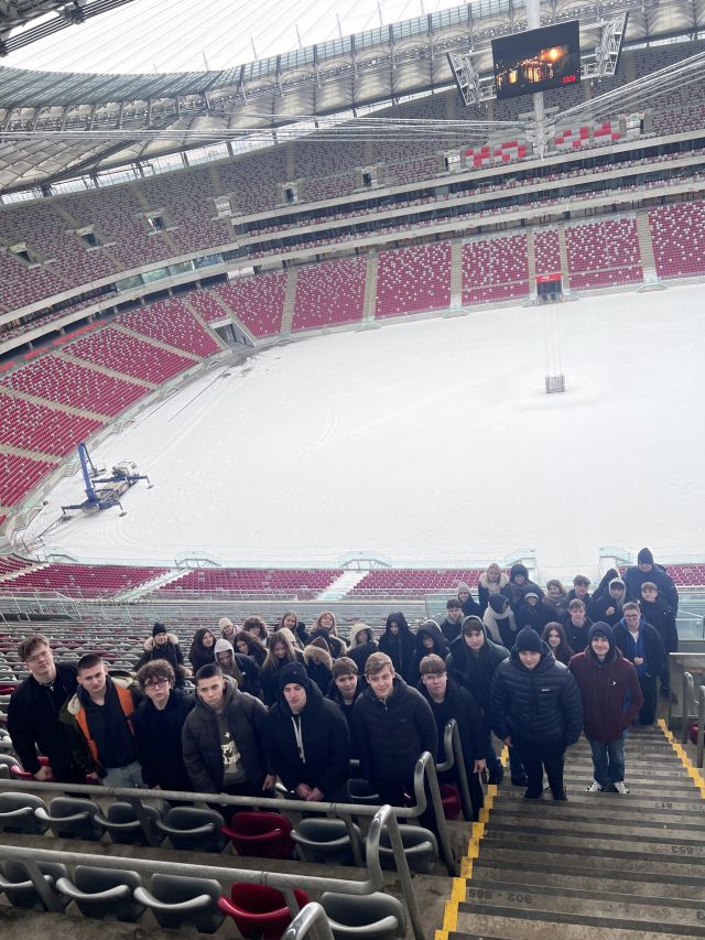 Głównym punktem programu było zwiedzanie PGE Narodowego – jednego z najnowocześniejszych i największych stadionów w Polsce. Podczas wizyty mieliśmy okazję zobaczyć trybuny, loże VIP, szatnię zawodników oraz zejść na płytę boiska. Przewodnik opowiedział nam wiele ciekawostek dotyczących budowy stadionu oraz najważniejszych wydarzeń sportowych i kulturalnych, które się tam odbyły.