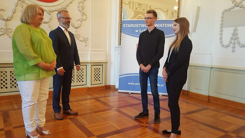W środę, 11 września grupa uczniów z ZS nr 2 w Lubartowie, która w poprzednim roku szkolnym uzyskała najwyższe wyniki w nauce, odebrała stypendia z rąk Starosty Lubartowskiego, pani Ewy Zybały.
