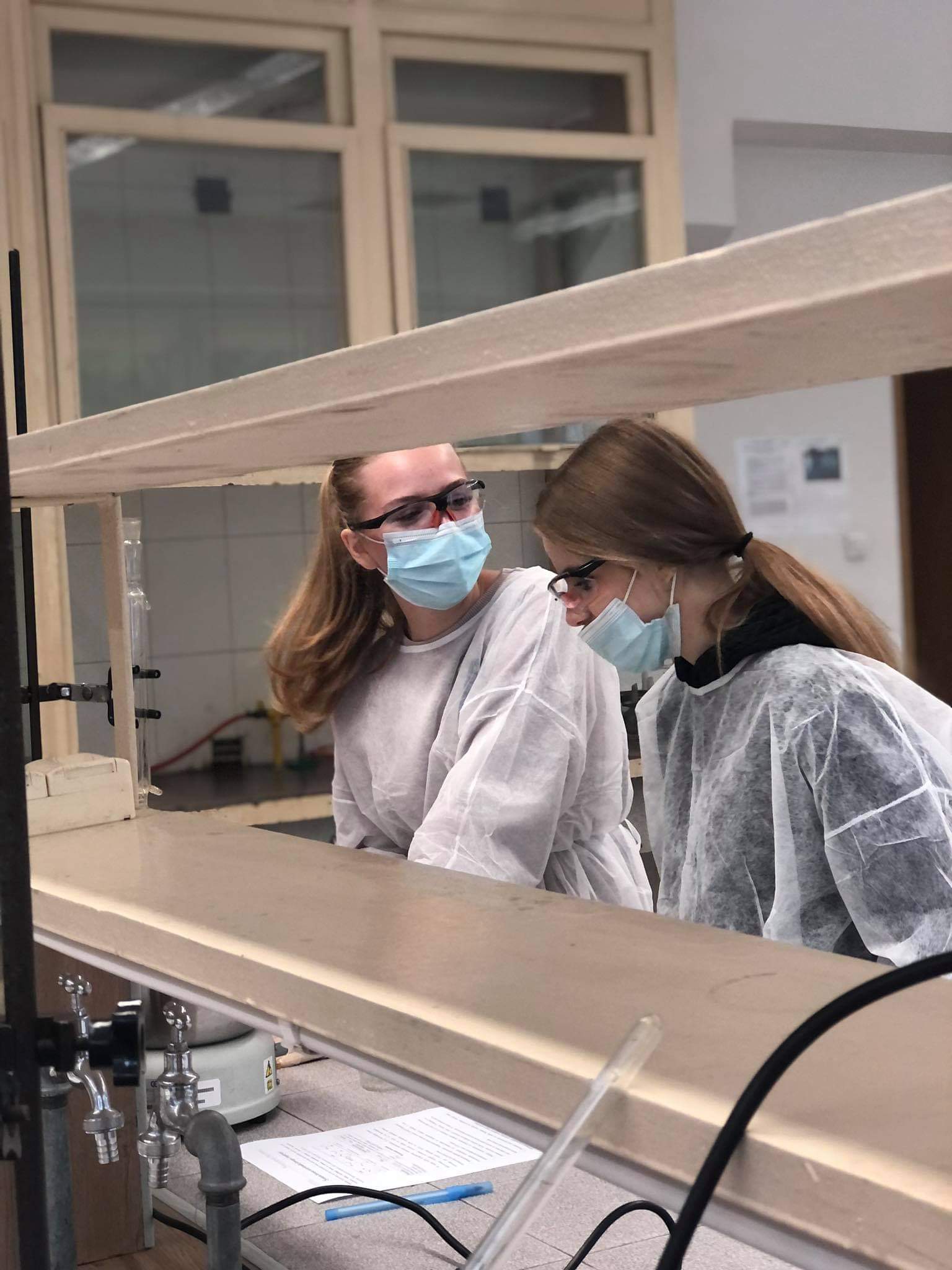 Na początku warsztatów zostaliśmy podzieleni na grupy. Następnie odbyło się krótkie szkolenie stanowiskowe z wykonywanego preparatu. Dla naszego bezpieczeństwa otrzymaliśmy również fartuchy laboratoryjne, rękawice ochronne oraz okulary. Na podstawie otrzymanej wcześniej instrukcji i z pomocą profesjonalnych pracowników naukowych, przystąpiliśmy do otrzymywania kwasu acetylosalicylowego (aspiryny).