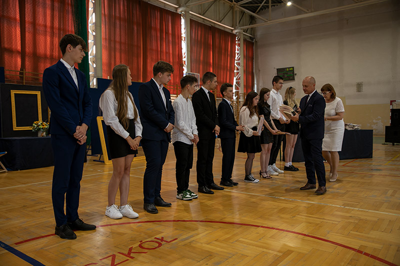 było w dniu zakończenia roku szkolnego – w Zespole Szkół nr 2 w Lubartowie. Było bardzo radośnie, bo towarzyszyła nam wszystkim świadomość wspaniale wykorzystanego czasu. Wiele się wszyscy nauczyliśmy, poznaliśmy i dojrzeliśmy do kolejnych wyzwań. Był to także czas podsumowania pracy całej społeczności szkoły. A było czym się pochwalić. Bardzo wielu uczniów liceum ogólnokształcącego i technikum informatycznego uzyskało bardzo wysokie średnie oraz stypendia i nagrody książkowe ufundowane przez Radę Rodziców. Nie zabrakło również podziękowań dla uczniów zaangażowanych w olimpiady, konkursy, wolontariat, zawody sportowe czy działalność artystyczną. Patrząc na mnóstwo młodzieży wychodzącej po odbiór dyplomów i nagród można było zrozumieć jak wiele działań zostało podjętych przez cały intensywny rok szkolny. O tym mówił również p.o. dyrektora Pan Zbigniew Sajda. Podkreślił związek końcoworocznego spotkania z niedawną uroczystością 25-lecia nadania imienia naszej szkole.