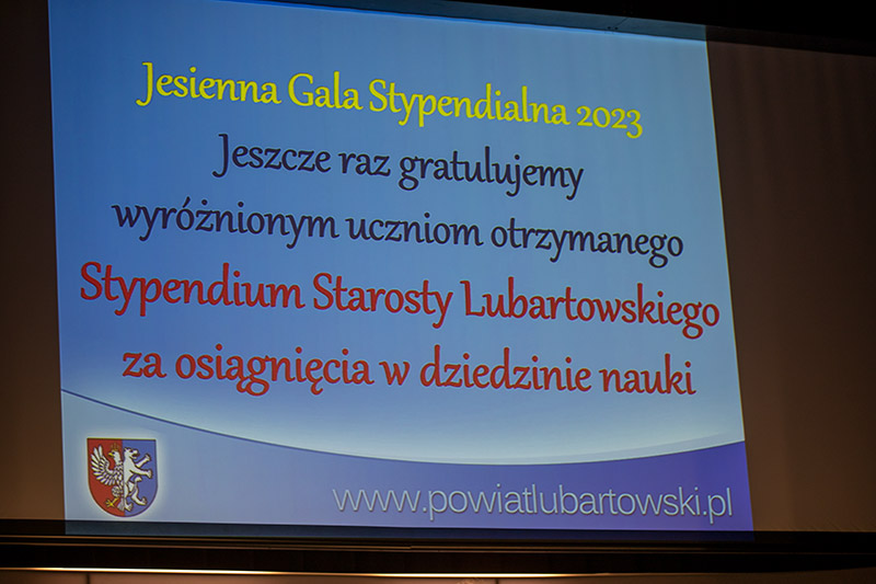 W dniu 28.09.2023 r. w sali widowiskowej Powiatowego Młodzieżowego Domu Kultury w Lubartowie odbyło się uroczyste wręczenie stypendiów dla najzdolniejszych uczniów w roku szkolnym 2022/2023. Wydarzenie uświetnił występ artystyczny wychowanków PMDK. Stypendia najlepszym uczniom wręczali Starosta Lubartowski pan Tomasz Marzęda i Senator RP pan Stanisław Gogacz.