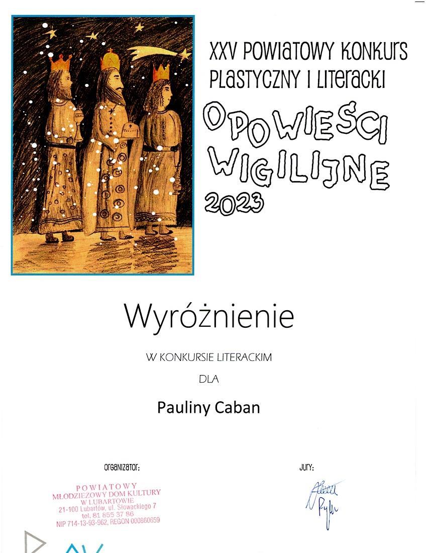 OPOWIEŚCI WIGILIJNE to tytuł Powiatowego Konkursu Literackiego organizowanego od wielu lat przez PMDK w Lubartowie. To konkurs, który skłania do refleksji dotyczących rodziny, wiary, poczucia wspólnoty i solidarności społecznej. Pobudza wyobraźnię, ale też wrażliwość na to, co przynosi życie.