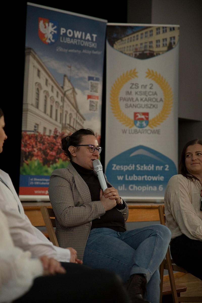 W drugiej części wydarzenia uczestnicy rozmawiali z gościem gali, Magdaleną Wlazło (absolwentką ZS nr 2 w Lubartowie), na temat jej drogi zawodowej. Młodzież słuchała z dużym zaciekawieniem, a najbardziej aktywni uczestnicy otrzymali drobne upominki.