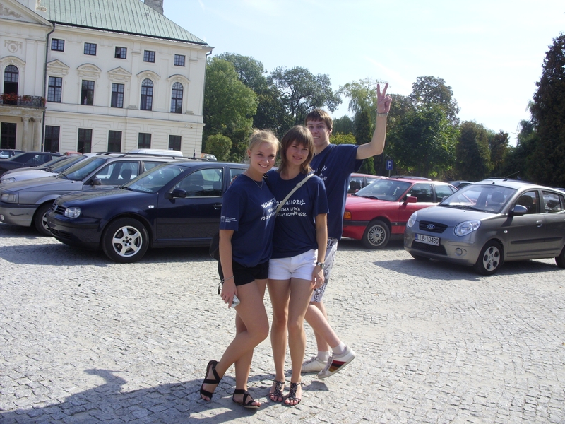 Drugiego dnia wcieliliśmy się w rolę przewodników po Lubartowie. W czasie spaceru pokazaliśmy naszym gościom lubartowskie zabytki, a także to, co zmieniło się w naszym mieście w ciągu ostatnich 20 lat. Zadaniem naszym było - na podstawie starych fotografii Lubartowa - rozpoznać te miejsca i je sfotografować. Spacer po mieście i wykład w Muzeum Regionalnym ułatwiły nam przygotowanie wystawy „Lubartów i Siauliai – wczoraj i dziś”. Po obiedzie bawiliśmy się przy quizie o Unii Europejskiej. Wieczorem przy ognisku uczyliśmy naszych kolegów kroków poloneza. Było śmiesznie.