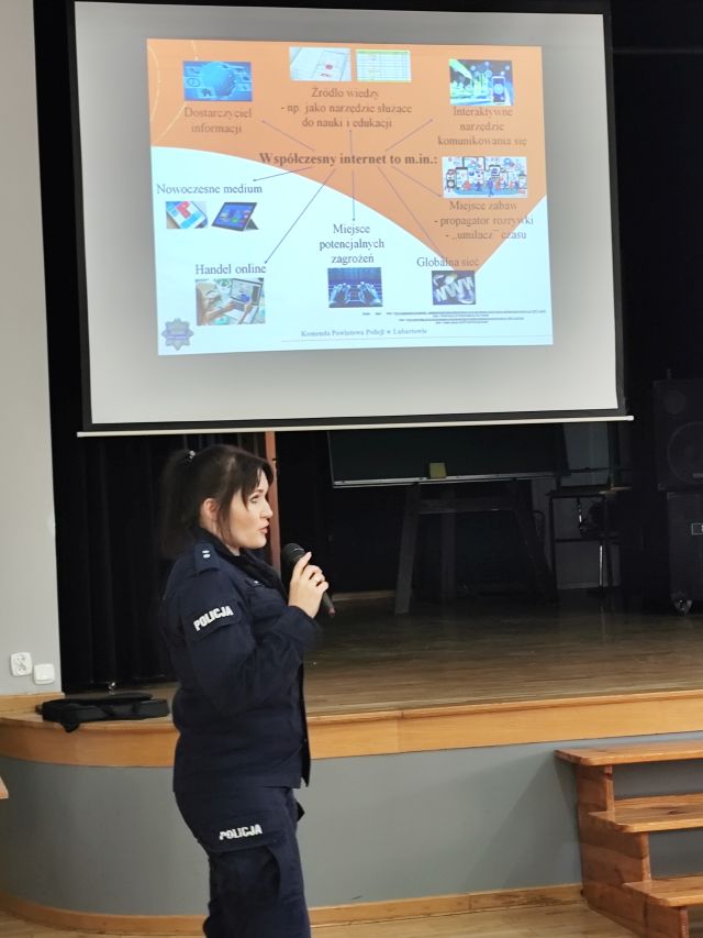 W dniu 1 października w ZS nr 2 w Lubartowie odbyło się spotkanie z policjantką, komisarz Jagodą Maj, poświęcone tematowi cyberzagrożeń oraz hejtu rówieśniczego. Podczas prelekcji uczniowie dowiedzieli się, jakie niebezpieczeństwa mogą czyhać na nich w Internecie, jak rozpoznawać i reagować na cyberprzemoc oraz gdzie szukać pomocy w przypadku bycia ofiarą hejtu. Spotkanie miało charakter edukacyjny oraz było jednym z działań szkoły w ramach Tygodnia Przeciwdziałania Przemocy Rówieśniczej. Dziękujemy p. komisarz Jagodzie Maj za ciekawą i niezwykle ważną prelekcję.
