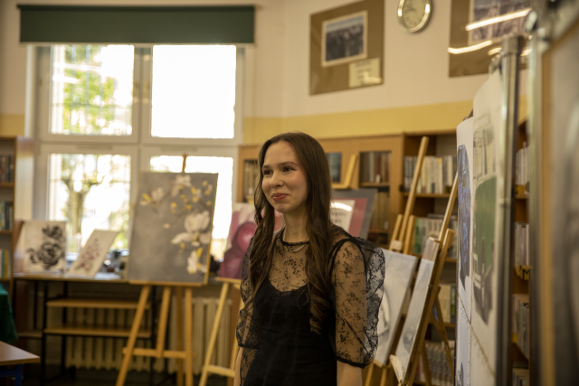 Gloria to uczennica 4 klasy humanistyczno-psychologicznej, która udostępniła swoje prace dla społeczności Zespołu Szkół nr 2 w Lubartowie na wystawę malarstwa i rysunku w bibliotece szkolnej. 2 października 2025 roku odbył się uroczysty wernisaż wystawy. Gloria swoją przygodę ze sztuką rozpoczęła w 2017 roku w pracowni „Art Chata”. Pod okiem plastyków rozwijała różne techniki malarskie i rysunkowe, a od 2021 roku doskonali swój warsztat w „Lubelskim Instytucie Architektury i Sztuki”, przygotowując się do wymarzonych studiów architektonicznych.
