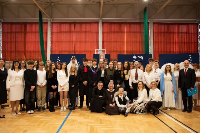Uczniowie z dużym zaangażowaniem wcielili się w powierzone role, prezentując wysoki poziom gry aktorskiej. Całość dopełniała starannie przygotowana scenografia oraz oprawa muzyczna, w której śpiew uczennic połączony był z grą na instrumentach, nadając przedstawieniu wyjątkowy, podniosły i wzruszający charakter.