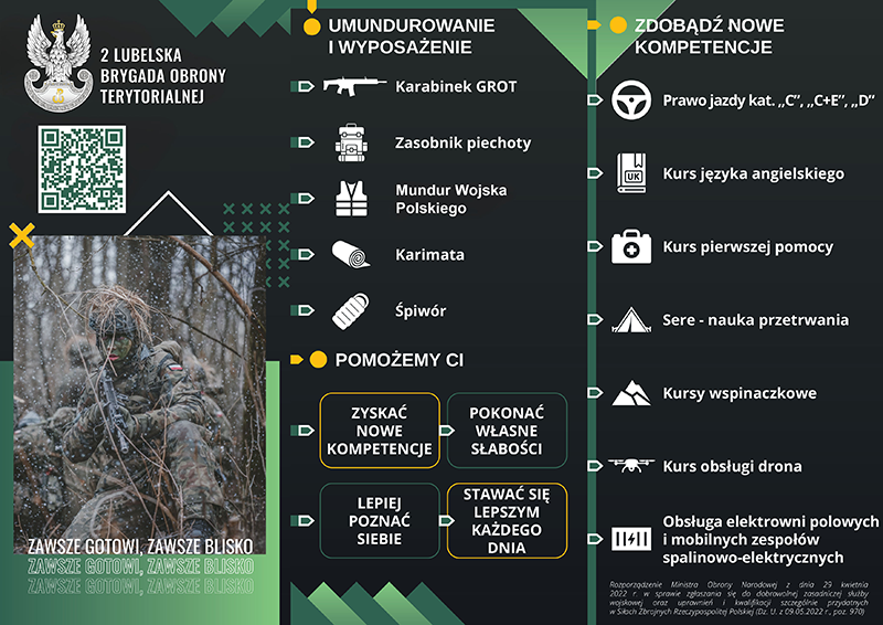 Jesteś osobą pełnoletnią i chcesz zrobić coś konkretnego, sprawdzić siebie i zdobyć realne umiejętności, możesz wziąć udział w projekcie „Ferie z WOT 2026”, organizowanym przez @2 Lubelska Brygada Obrony Terytorialnej.