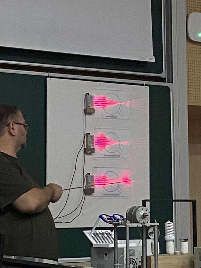 Duże zainteresowanie wzbudziła część doświadczalna, omawiająca tematykę prądu elektrycznego. Uczniowie sprawdzali swoją wiedzę z łączenia odbiorników, znaczenia ich oporu i mocy, przepływu prądu przez ciecze i gazy oraz sposobów prostowania prądu przemiennego.
