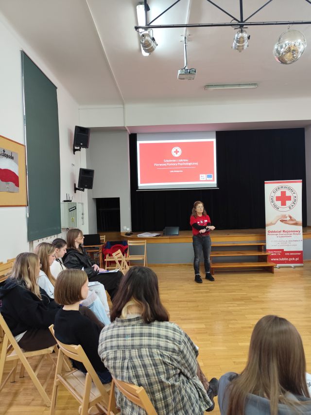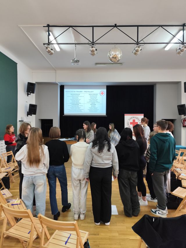 W Zespole Szkół nr 2 odbyły się warsztaty poświęcone udzielaniu wsparcia psychologicznego zorganizowane przez Rejonowy Oddział PCK w Lubartowie. Uczniowie dowiedzieli się, jak rozpoznawać osoby potrzebujące pomocy, jak pomagać im w poradzeniu sobie z silnymi emocjami, jak aktywnie słuchać oraz łączyć się z siecią wsparcia. Podczas zajęć uczestnicy brali udział w scenkach i praktycznych ćwiczeniach, dzięki którym mogli przećwiczyć zdobytą wiedzę w bezpiecznych i wspierających warunkach. Warsztaty spotkały się z dużym zainteresowaniem i zachęciły młodzież do większej uważności i empatii wobec innych.