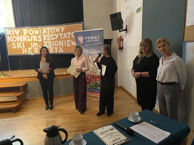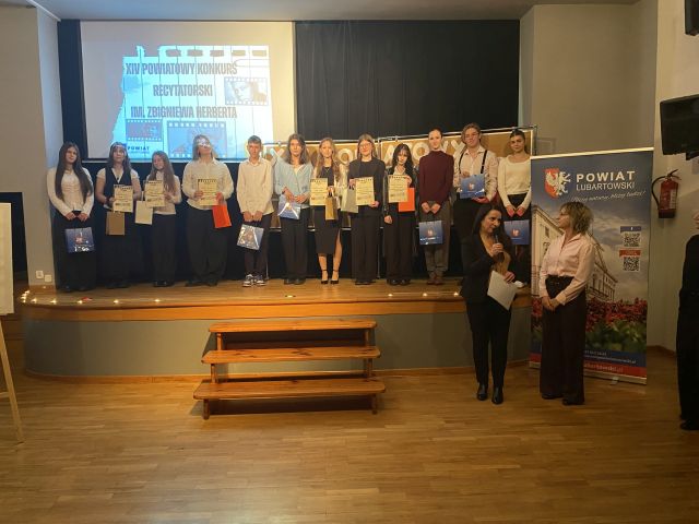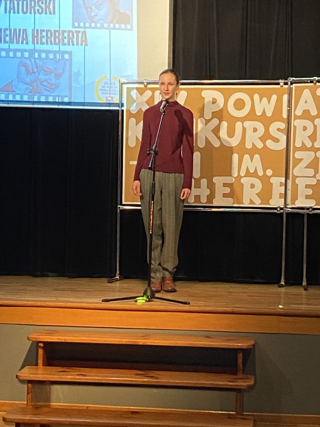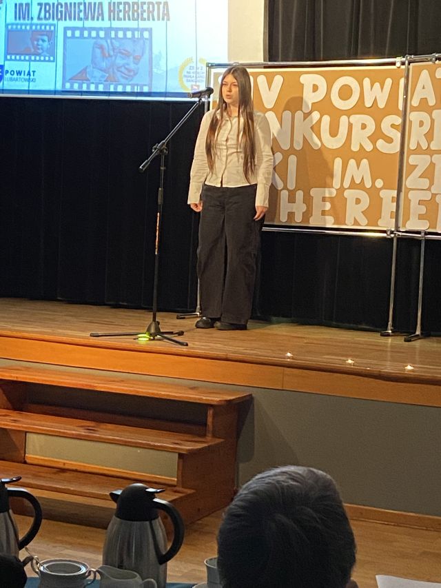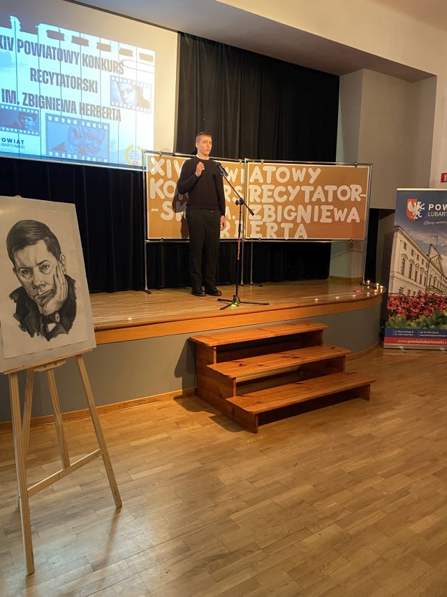 W dniu 27.11.2025 po raz czternasty mieliśmy przyjemność gościć w murach ZS2 uczniów szkół podstawowych i ponadpodstawowych powiatu lubartowskiego na XIV Powiatowym Konkursie Recytatorskim im. Zbigniewa Herberta. Tegoroczna rywalizacja przebiegała pod hasłem „Panie, dziękuję Ci, że stworzyłeś świat piękny i bardzo różny”. Wzięło w niej udział 25 uczniów. Patronem imprezy jest Starostwo Powiatowe w Lubartowie, które ufundowało również nagrody.
