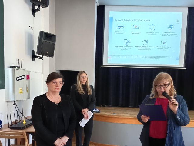 Spotkanie odbyło się w ramach edukacji ekonomicznej i miało na celu przybliżenie młodzieży zasad funkcjonowania rynku finansowego oraz bezpiecznego korzystania z usług bankowych. Przedstawicielki banku podzieliły się wiedzą na temat cyberprzestępczości oraz sposobów ochrony kont bankowych, zwracając szczególną uwagę na zagrożenia związane z działalnością w Internecie. Uczniowie uzyskali również wskazówki, jak sprawnie i świadomie poruszać się na rynku finansowym oraz informacje z pierwszej ręki dotyczące oferty banku skierowanej do młodych ludzi. Omówiono korzyści wynikające z korzystania z aplikacji mobilnych banku, zasady bezpiecznych zakupów online oraz zalety posiadania konta bankowego przeznaczonego dla młodych osób.