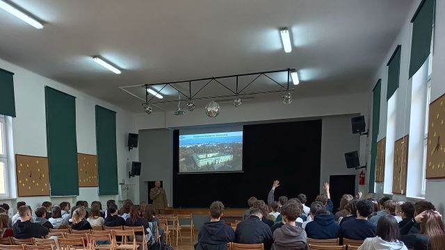 W spotkaniu uczestniczyli tegoroczni maturzyści z klas licealnych o profilu matematyczno- fizycznym i z technikum informatycznego, jak również młodsze klasy LO. Spotkanie zorganizowała p. Marta Mazurek, która jest koordynatorem działań między uczelnią, a naszą szkołą. Uczniowie zapoznani zostali z ofertą edukacyjną uczelni, z poszczególnymi wydziałami i kierunkami studiów, jakie mają możliwość podjąć zarówno na kierunkach wojskowych, jak i cywilnych. Uczelnia oferuje możliwość nauki i rozwoju na kilkudziesięciu kierunkach. Studenci mogą też rozwijać pasje i zainteresowania działając w kołach naukowych, kołach zainteresowań, czy w sekcjach sportowych. Oprócz zaplecza naukowego uczelnia dysponuje bogatą infrastrukturą sportową, w której każdy może znaleźć coś dla siebie.