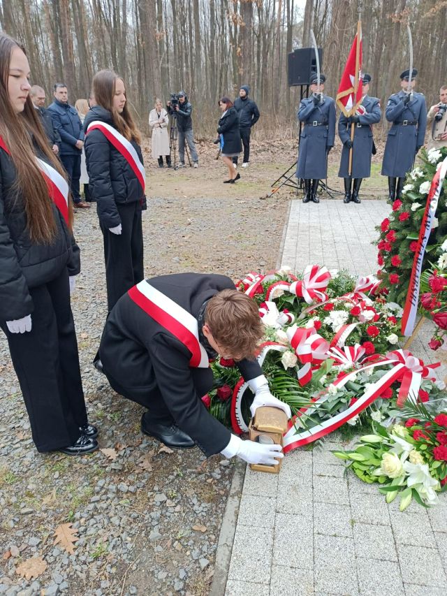 Uczniowie ZS2 z należytą powagą i szacunkiem oddali hołd ofiarom, składając symboliczny znicz pamięci. Udział w uroczystości stanowił istotny element wychowania patriotycznego oraz edukacji historycznej młodzieży, sprzyjając pogłębianiu wiedzy o losach lokalnej społeczności w czasie II wojny światowej oraz kształtowaniu postaw opartych na pamięci i odpowiedzialności za dziedzictwo historyczne.