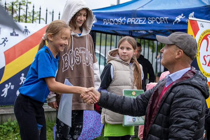 Pierwszym punktem poniedziałkowych zawodów było wręczenie nagród najlepszym szkołom w ogólnej powiatowej klasyfikacji sportowej za rok szkolny 2024/2025. Wyniki klasyfikacji szkół przedstawił pan Zbigniew Sajda- Sekretarz PSZS w Lubartowie. Najbardziej usportowione szkoły w minionym roku szkolnym otrzymały dyplomy i puchary. Nagrody wręczali Przewodniczący PSZS w Lubartowie pan Krzysztof Dec, oraz Skarbnik PSZS w Lubartowie pan Tomasz Mitura.