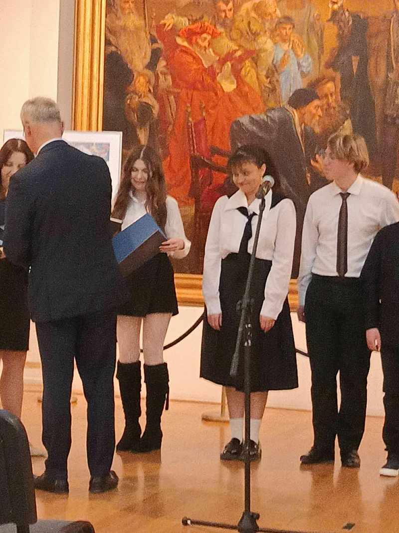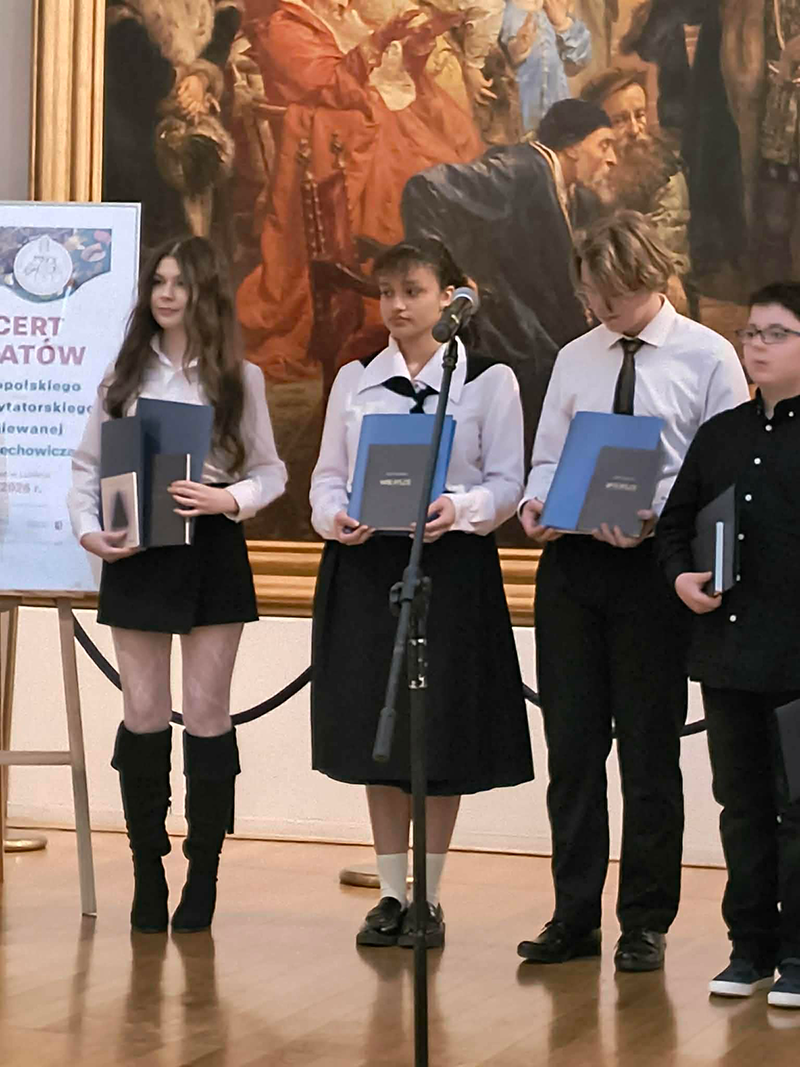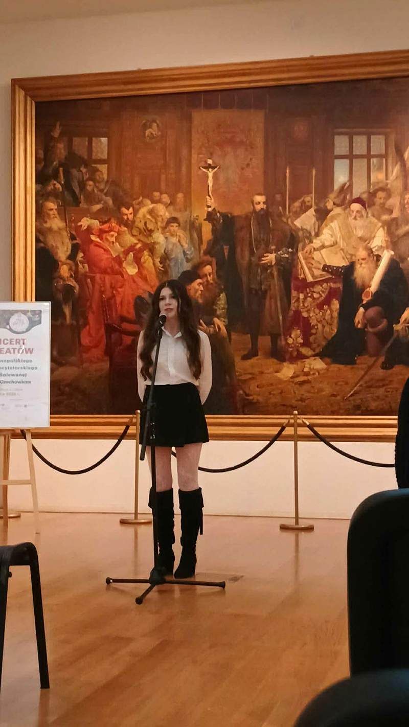 Z przyjemnością informujemy, iż uczniowie I LO: Aleksandra Goral (kl. 3L) i Dominik Cieniuch (kl. 2H) uzyskali tytuły laureatów XXVI Ogólnopolskiego Konkursu Recytatorskiego i Poezji Śpiewanej im. J. Czechowicza. Koncert laureatów miał miejsce 13 marca na Zamku Lubelskim w Galerii Malarstwa Polskiego XIX i XX Wieku. Nasi uczniowie zaprezentowali wiersze "Wszystko" oraz "Do prostego człowieka" autorstwa Juliana Tuwima. Ich recytacja oraz podniosły ton wydarzenia poruszyły serca zebranych na sali!
