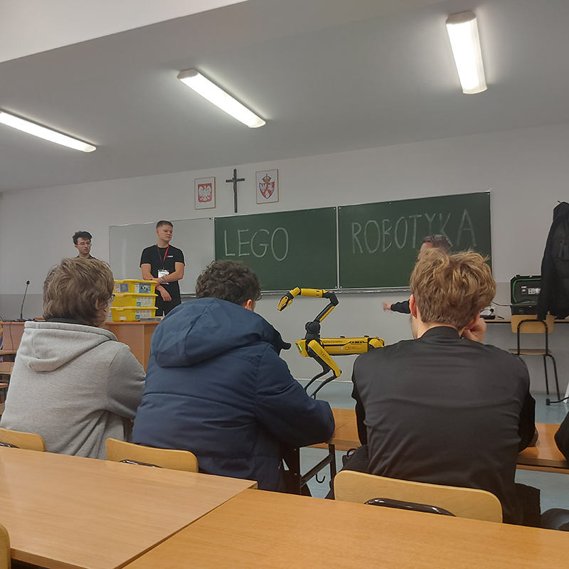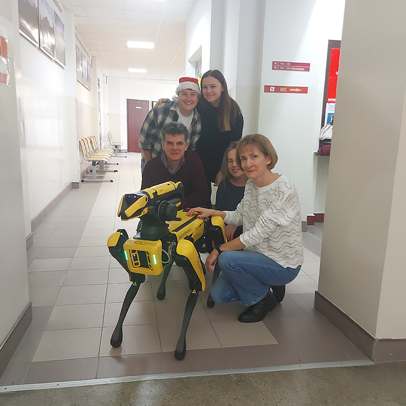 5 grudnia uczniowie klas 1T i 3T z Zespołu Szkół nr 2 w Lubartowie wzięli udział w wyjątkowym, pełnym technologicznych atrakcji wyjeździe na Politechnikę Lubelską. Już na wejściu zrobiło się świątecznie – na uczestników czekał Mikołaj z elfem pomocnikiem, a największą gwiazdą powitania okazał się robo-pies w przebraniu renifera.