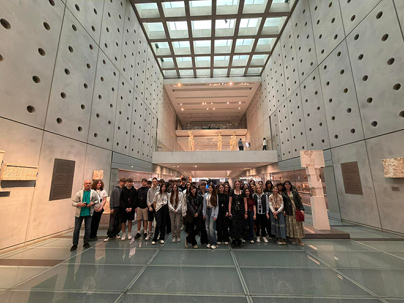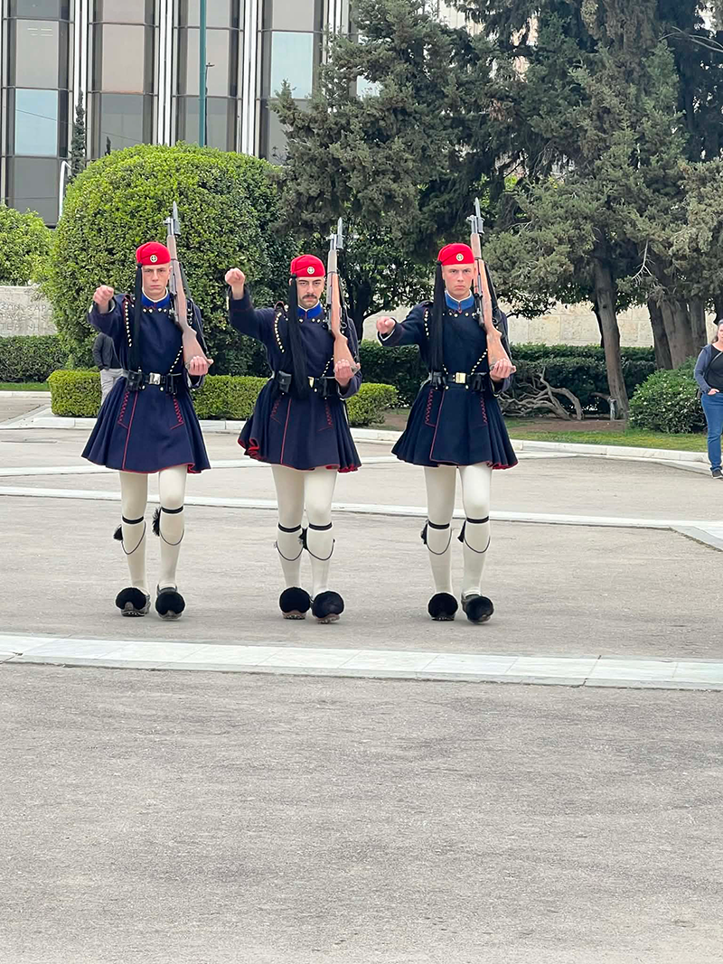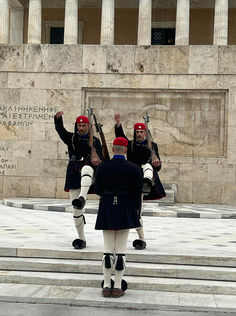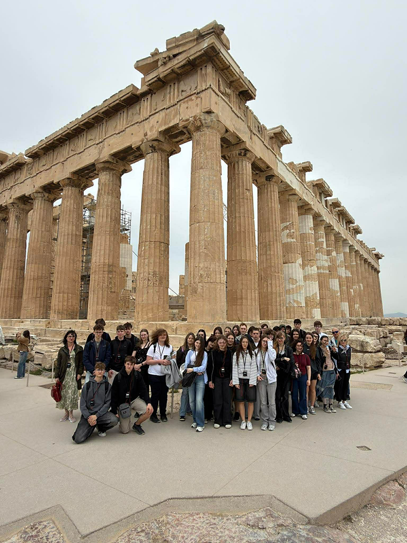 Czwarty dzień wycieczki- Ateny. Był on niezwykle intensywny i pełen niezapomnianych wrażeń. Rozpoczęliśmy od wizyty w Muzeum Akropolu, gdzie w nowoczesnej przestrzeni mogliśmy podziwiać cenne znaleziska archeologiczne i lepiej zrozumieć historię starożytnego miasta. Jako ciekawostkę mogliśmy podziwiać makietę Akropolu zbudowaną z klocków lego. Następnie udaliśmy się na Akropol – symbol Aten i jedno z najważniejszych miejsc w całej Grecji. Spacer wśród monumentalnych ruin, w tym Partenonu, był wyjątkowym doświadczeniem. Kolejnym punktem był Areopag, skaliste wzgórze, z którego rozciąga się piękny widok na miasto. Na zakończenie dnia odwiedziliśmy plac Syntagma, gdzie mieliśmy okazję zobaczyć uroczystą zmianę warty przed Parlamentem. Precyzyjne ruchy gwardzistów i ich tradycyjne stroje były ciekawym i widowiskowym elementem greckiej kultury. Cały dzień był doskonałym połączeniem historii, kultury i pięknych widoków, które na długo pozostaną w pamięci.