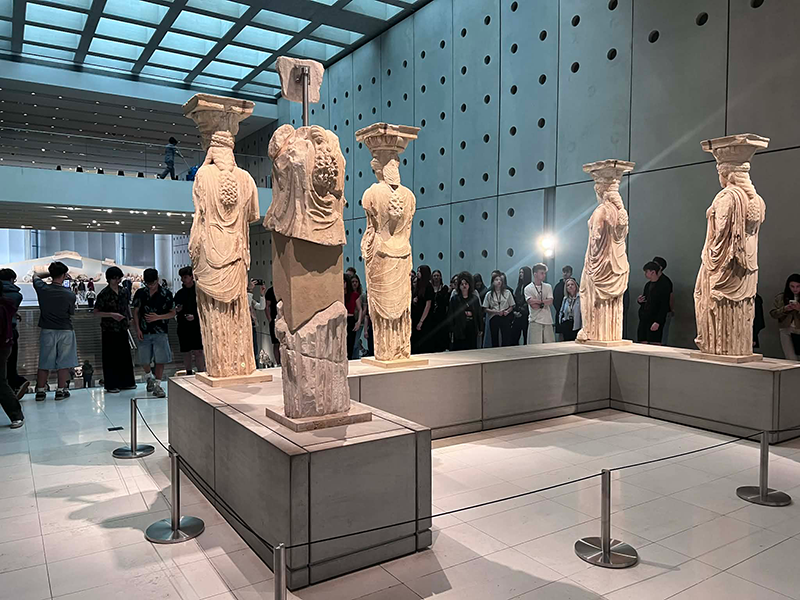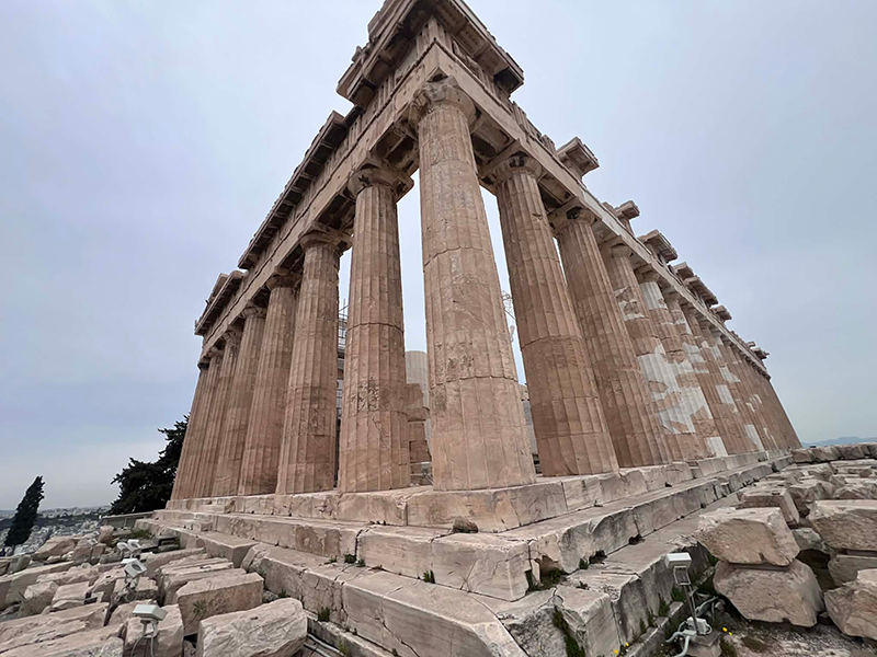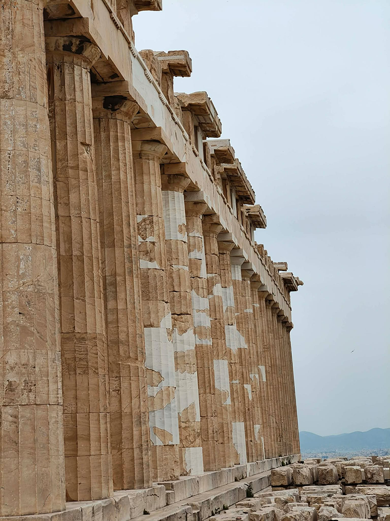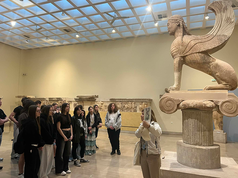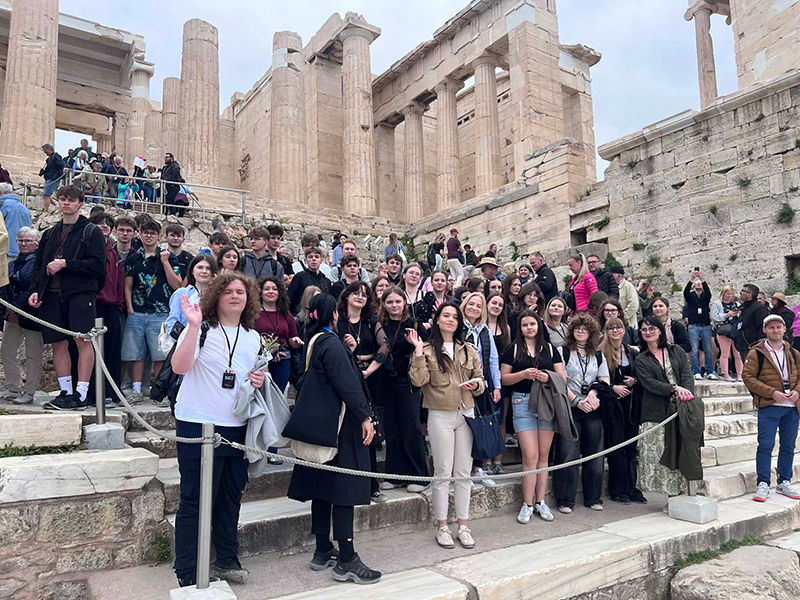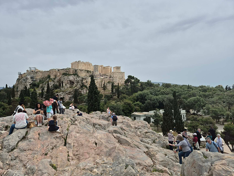 Czwarty dzień wycieczki- Ateny. Był on niezwykle intensywny i pełen niezapomnianych wrażeń. Rozpoczęliśmy od wizyty w Muzeum Akropolu, gdzie w nowoczesnej przestrzeni mogliśmy podziwiać cenne znaleziska archeologiczne i lepiej zrozumieć historię starożytnego miasta. Jako ciekawostkę mogliśmy podziwiać makietę Akropolu zbudowaną z klocków lego. Następnie udaliśmy się na Akropol – symbol Aten i jedno z najważniejszych miejsc w całej Grecji. Spacer wśród monumentalnych ruin, w tym Partenonu, był wyjątkowym doświadczeniem. Kolejnym punktem był Areopag, skaliste wzgórze, z którego rozciąga się piękny widok na miasto. Na zakończenie dnia odwiedziliśmy plac Syntagma, gdzie mieliśmy okazję zobaczyć uroczystą zmianę warty przed Parlamentem. Precyzyjne ruchy gwardzistów i ich tradycyjne stroje były ciekawym i widowiskowym elementem greckiej kultury. Cały dzień był doskonałym połączeniem historii, kultury i pięknych widoków, które na długo pozostaną w pamięci.