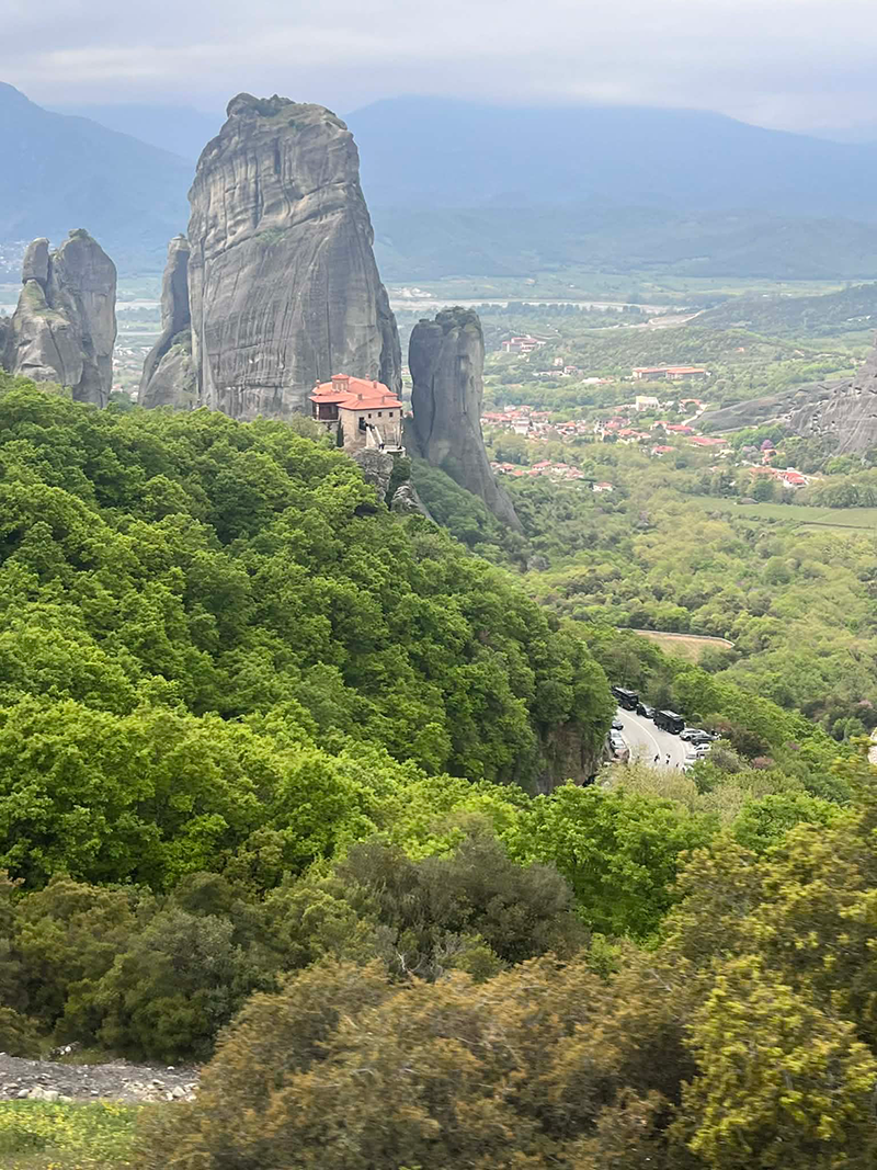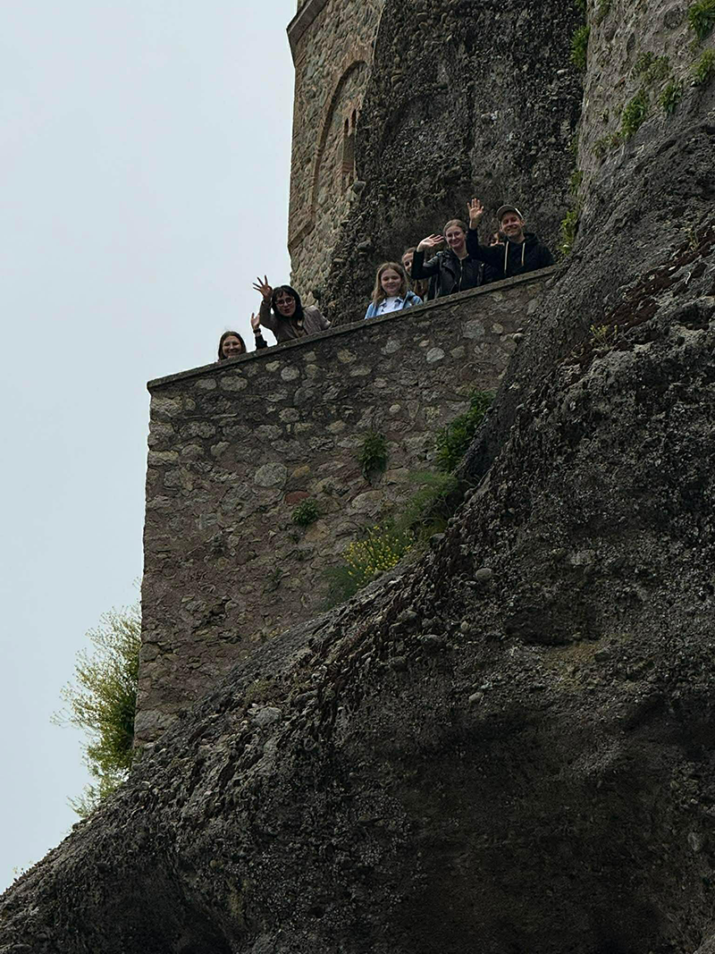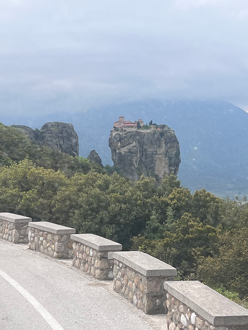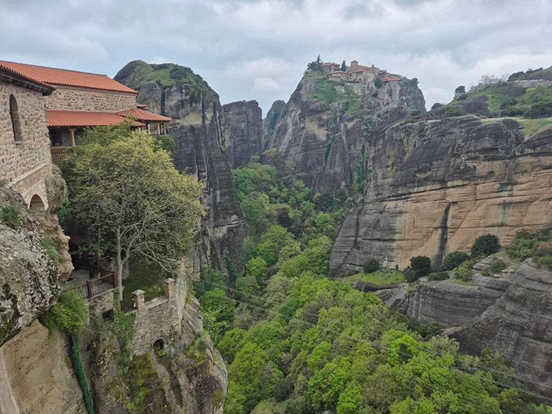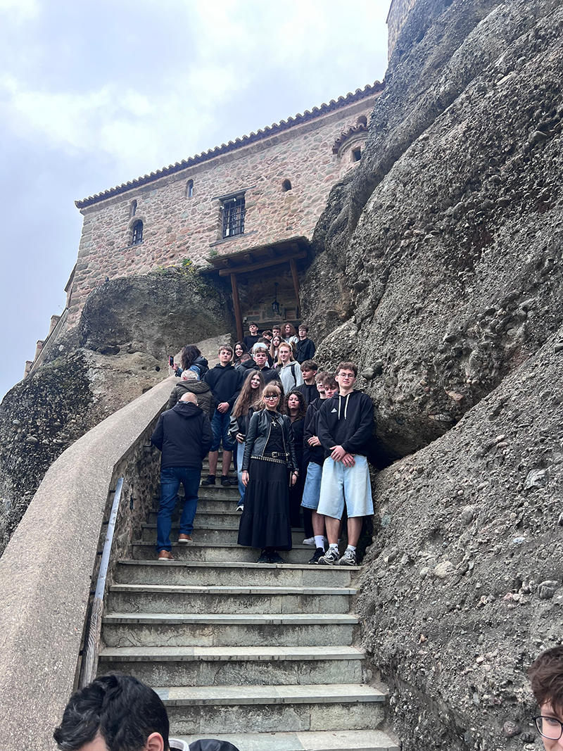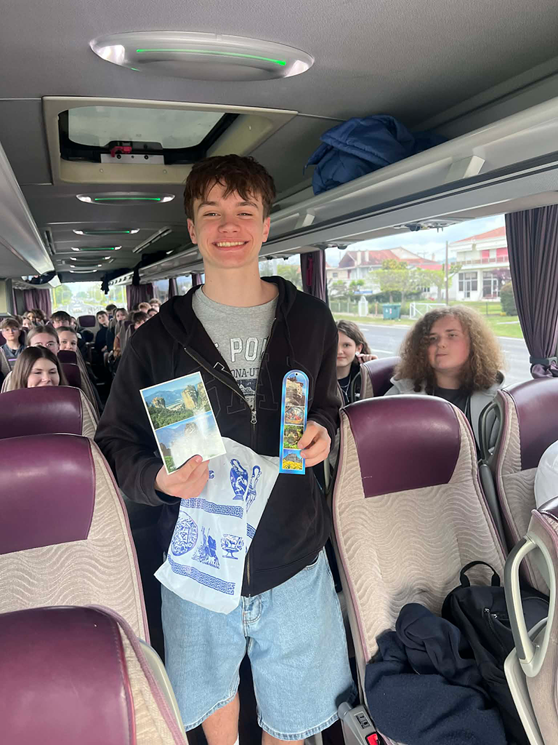 Drugiego dnia odwiedziliśmy pracownię ikonopisarstwa bizantyjskiego, gdzie poznaliśmy techniki tworzenia ikon oraz przeprowadziliśmy zabawę z nagrodami. Jadąc na spotkanie z lokalnym przewodnikiem do monastyru, który powstał w XVI w. mijaliśmy Meteorski "Las skalny" wpisany na światową listę dziedzictwa UNESCO. Widok klasztorów położonych na wysokich, skalnych formacjach zrobił na nas ogromne wrażenie. Dowiedzieliśmy się, jak powstawały te niezwykłe budowle i jak wyglądało życie mnichów w tak trudno dostępnych miejscach - i co więcej - jak wygląda ich dzisiejsza posługa! Następnie odwiedziliśmy miejsce bitwy pod Termopilami. To właśnie tam garstka Spartan stawiła opór potężnej armii perskiej. Upamiętnieniem tego historycznego wydarzenia jest pomnik króla Sparty- Leonidasa.