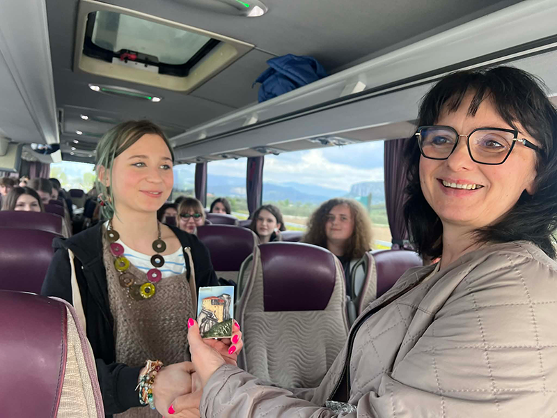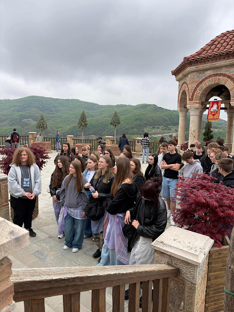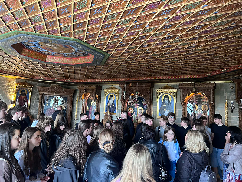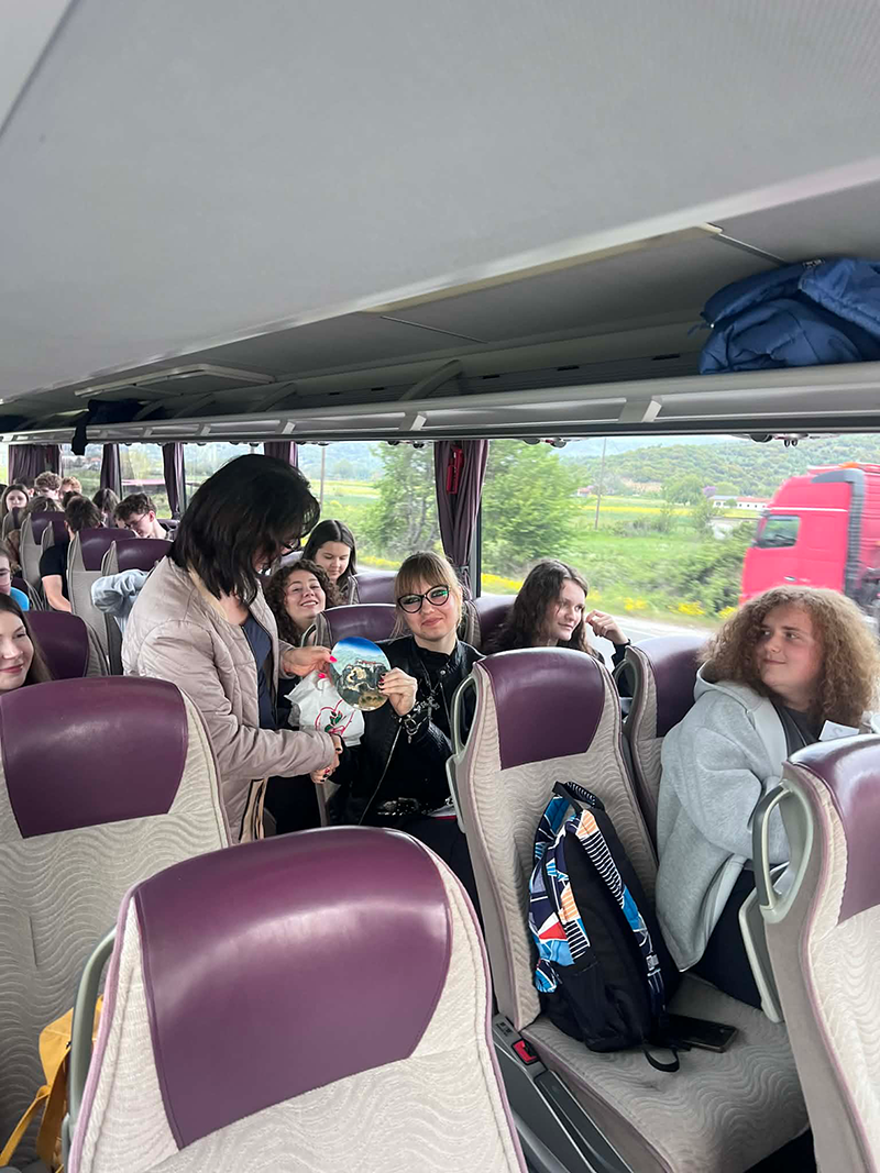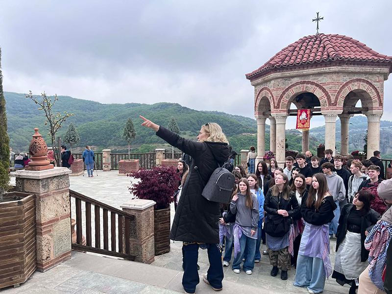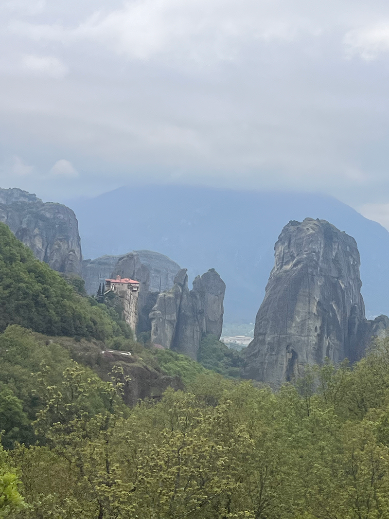 Drugiego dnia odwiedziliśmy pracownię ikonopisarstwa bizantyjskiego, gdzie poznaliśmy techniki tworzenia ikon oraz przeprowadziliśmy zabawę z nagrodami. Jadąc na spotkanie z lokalnym przewodnikiem do monastyru, który powstał w XVI w. mijaliśmy Meteorski "Las skalny" wpisany na światową listę dziedzictwa UNESCO. Widok klasztorów położonych na wysokich, skalnych formacjach zrobił na nas ogromne wrażenie. Dowiedzieliśmy się, jak powstawały te niezwykłe budowle i jak wyglądało życie mnichów w tak trudno dostępnych miejscach - i co więcej - jak wygląda ich dzisiejsza posługa! Następnie odwiedziliśmy miejsce bitwy pod Termopilami. To właśnie tam garstka Spartan stawiła opór potężnej armii perskiej. Upamiętnieniem tego historycznego wydarzenia jest pomnik króla Sparty- Leonidasa.