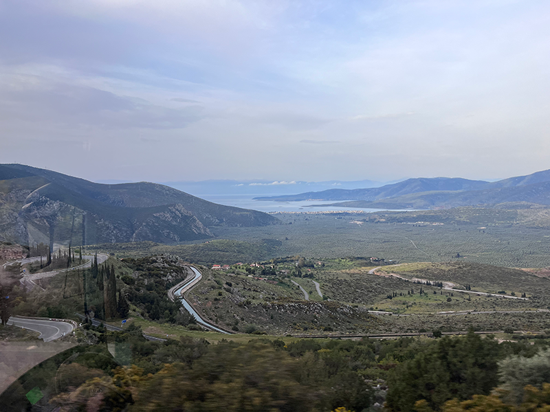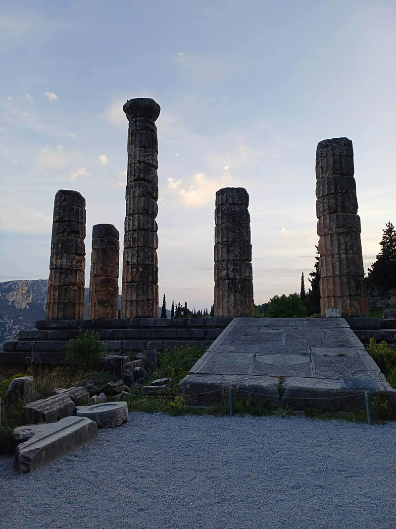 W poniedziałek 13 kwietnia- pierwszego dnia po przybyciu do Aten- udaliśmy się na północ kraju do miejscowości Delfy, aby obejrzeć słynne miejsce, gdzie wyrocznia delficka przepowiadała starożytnym przyszłość oraz muzeum w Delfach przybliżające historię świątyni greckiego boga sztuki- Apollo. Zwiedziliśmy tamtejsze muzeum archeologiczne, w którym mogliśmy podziwiać liczne zabytki i wykopaliska, czy napawać się widokiem gór, które przepięknie otaczały teren świątynnych wzgórz.