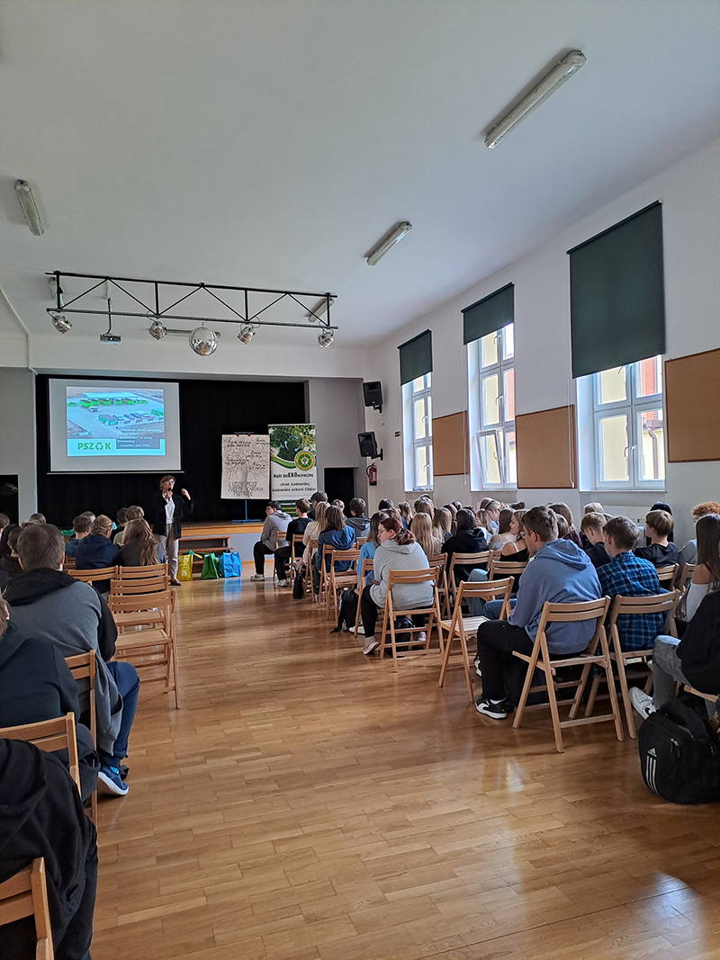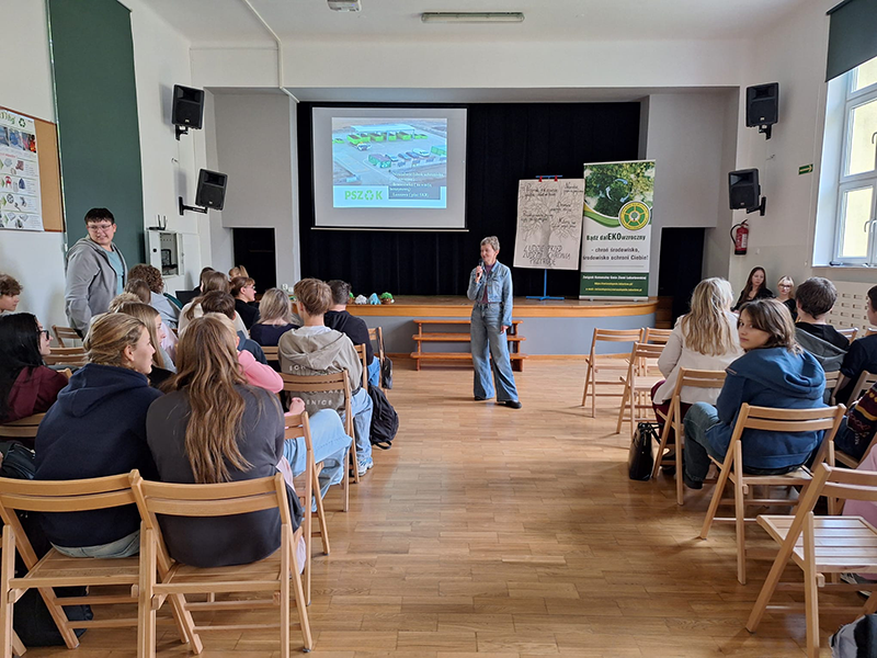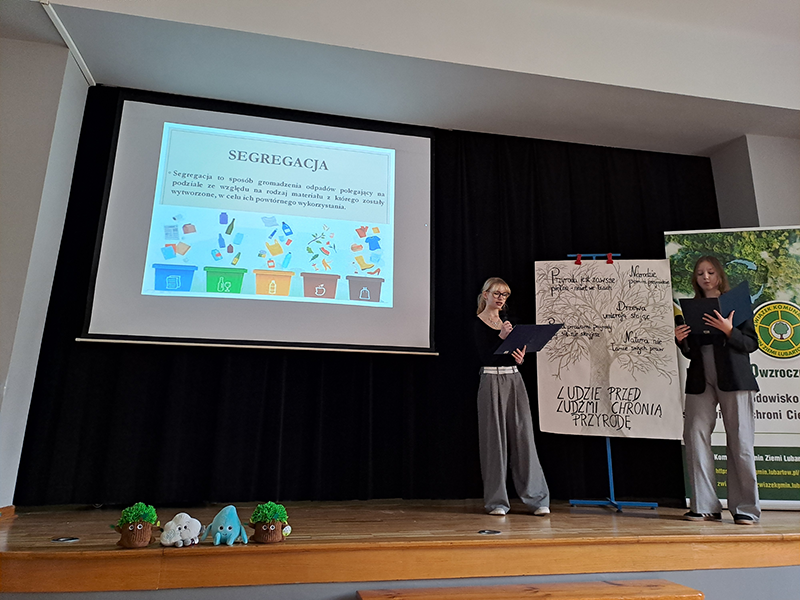 Tradycyjnie w pierwszych tygodniach roku szkolnego 2025/2026 w ZS nr 2 Lubartów miały miejsce ekologiczne działania społeczności szkolnej. W związku z pojawieniem się nowych uczniów z siedmiu klas pierwszych liceum i dwóch technikum odbyło się edukacyjne spotkanie o charakterze warsztatowym na temat recyklingu, segregacji odpadów i problemów ekologicznych. Zajęcia przybliżyły nowej młodzieży ideę Zero Waste oraz zasady prawidłowej segregacji odpadów. Prezentację połączoną z instruktażem przedstawiły uczennice z klasy 3G – Emilia, Laura, Marlena i Milena pod kierunkiem nauczycielki geografii pani Moniki Jarosz oraz dużym wsparciem pani Grażyny Joachimowicz, reprezentującej Związek Komunalny Gmin Ziemi Lubartowskiej. Warsztaty zostały przeprowadzone bardzo obrazowo i zrozumiale.