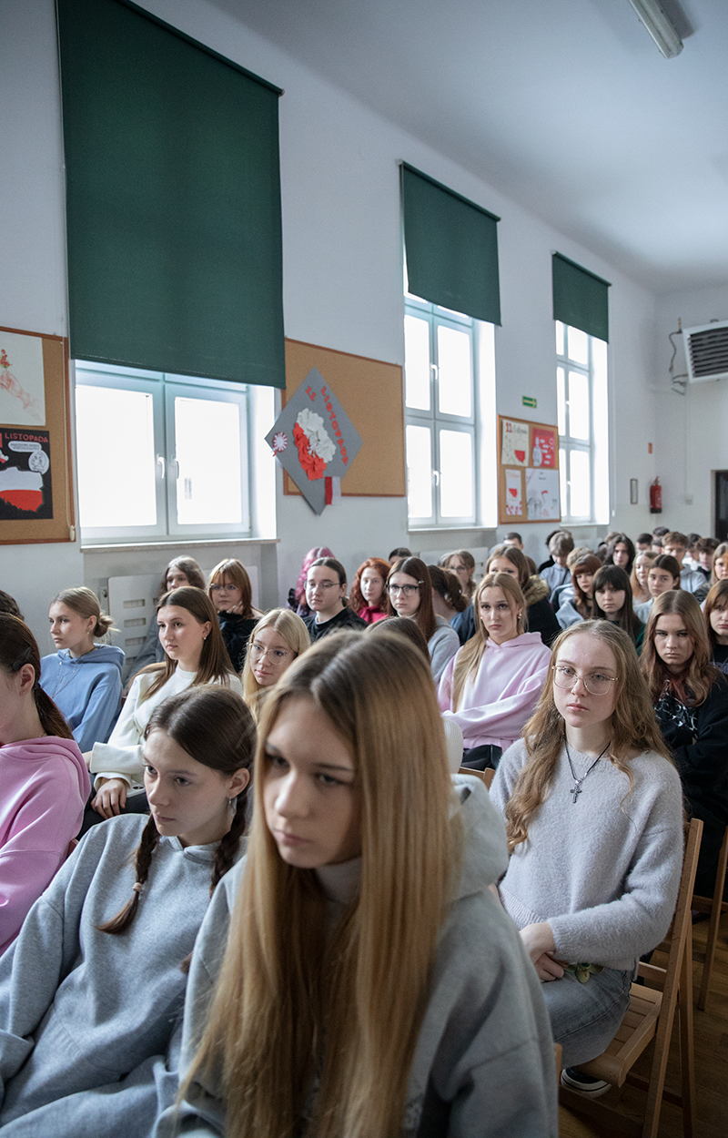 "Najważniejsze są relacje, bezinteresowna pomoc i rozwijanie swoich pasji" powiedziała mówczyni. Zwróciła uwagę na potrzebę podążania za własnymi a nie cudzymi marzeniami, na budowanie swoich kompetencji poprzez zaangażowanie w projekty i aktywność w społeczności szkolnej. Z melancholią wspominała swoje szkolne lata w ZS2, wsparcie wychowawczyni i mentorki mgr Anny Lipki - Zielińskiej oraz możliwość rozwijania swojej przedsiębiorczości w murach szkoły z ul. Chopina, np. podczas organizowania studniówki.