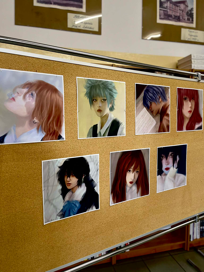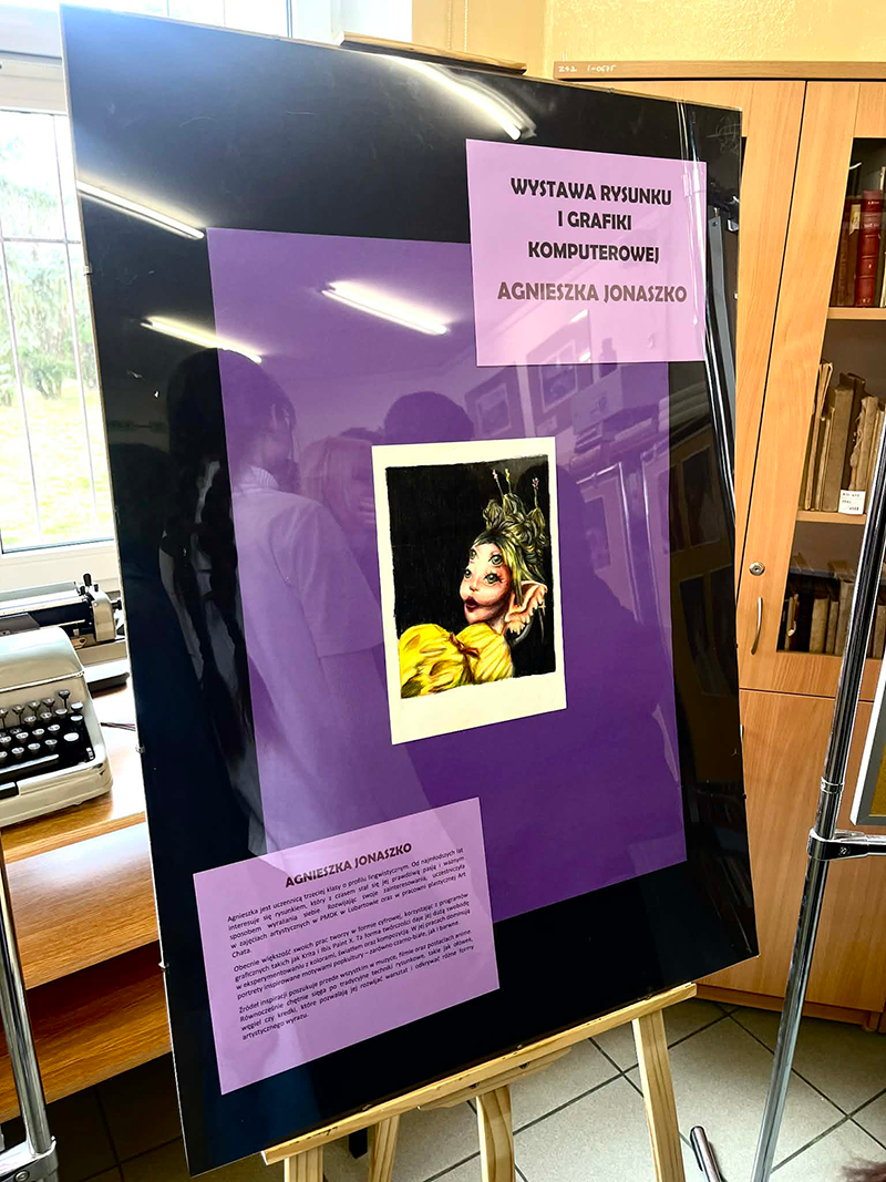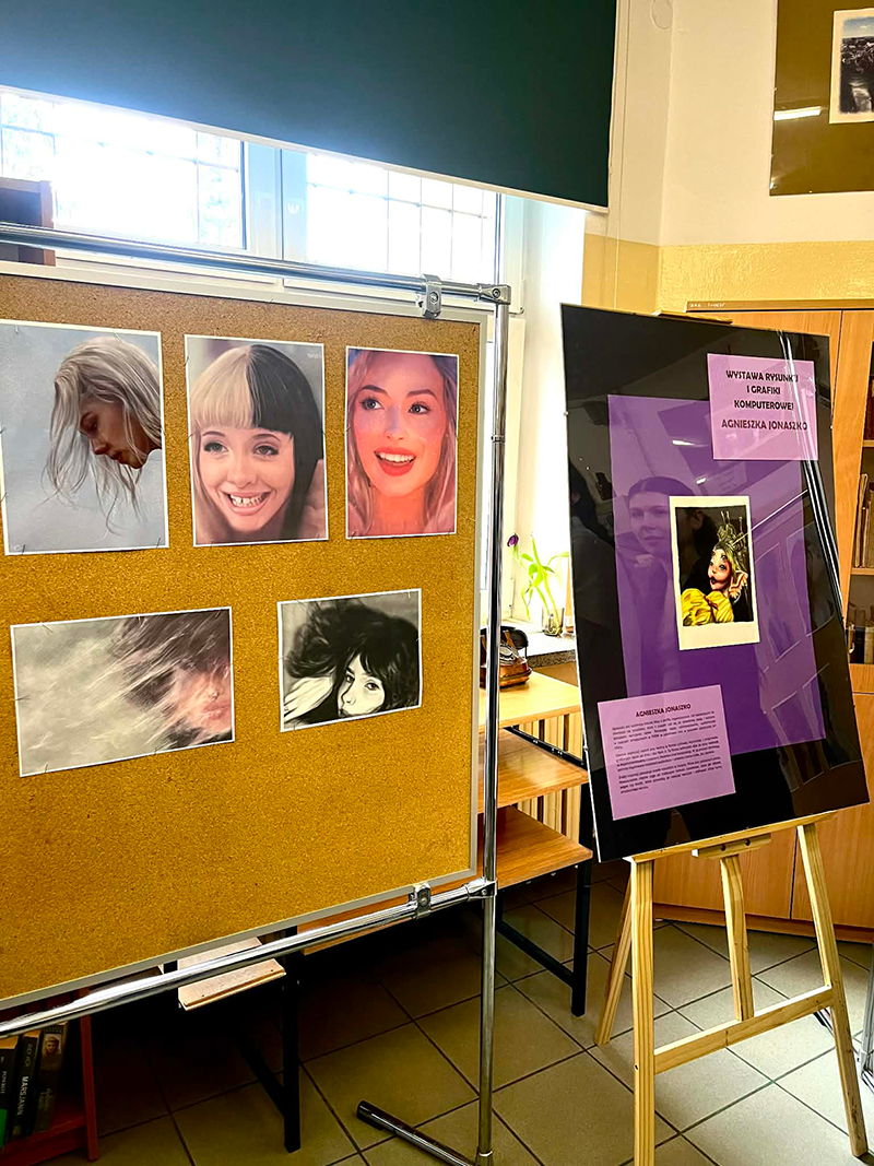 17 marca 2026 roku w bibliotece szkolnej Zespołu Szkół nr 2 w Lubartowie odbył się wernisaż wystawy grafiki i rysunku autorstwa uczennicy klasy 3 L – Agnieszki Jonaszko. Agnieszka od najmłodszych lat interesuje się sztuką, która z czasem stał się jej pasją oraz ważnym sposobem wyrażania siebie. Swoje umiejętności rozwijała podczas zajęć artystycznych w PMDK w Lubartowie oraz w pracowni plastycznej Art Chata. Obecnie tworzy głównie w formie cyfrowej, wykorzystując programy graficzne, co daje jej dużą swobodę w eksperymentowaniu z kolorem, światłem i kompozycją. W jej pracach dominują portrety inspirowane popkulturą. Inspiracje czerpie z muzyki, filmu oraz postaci anime.