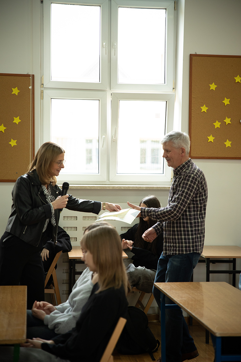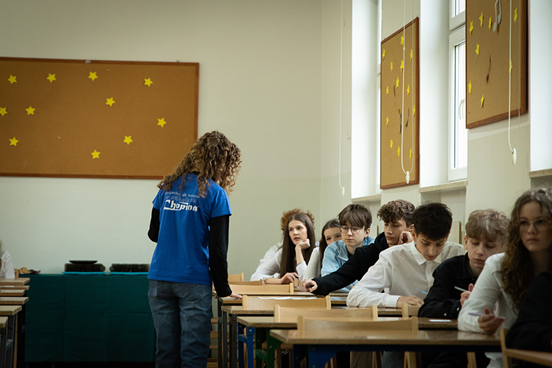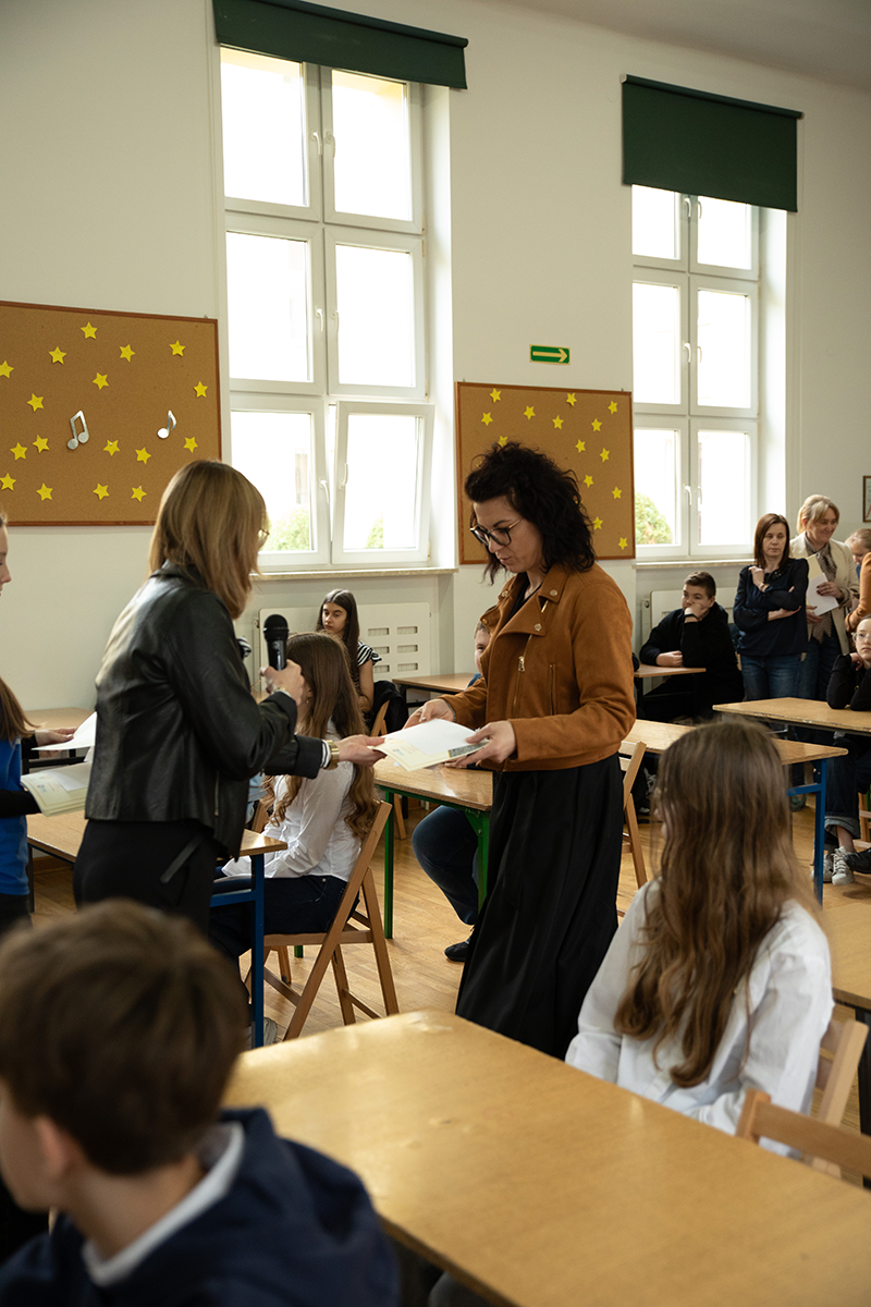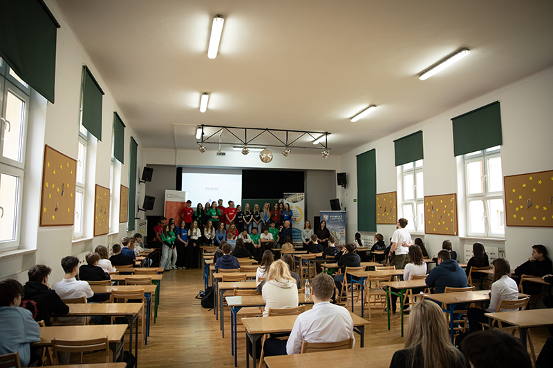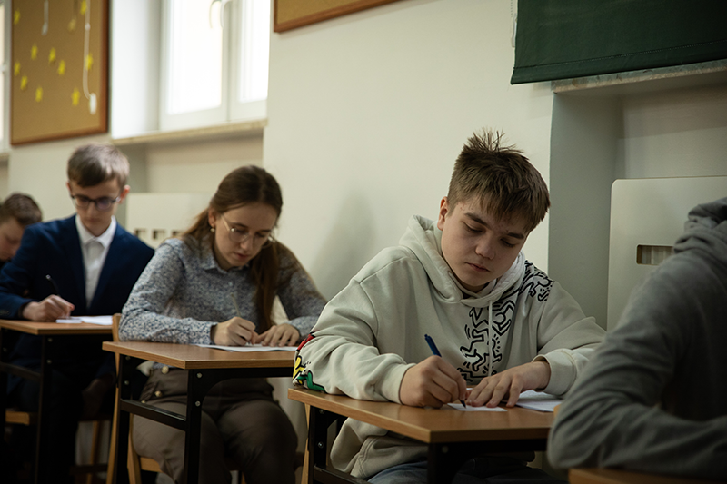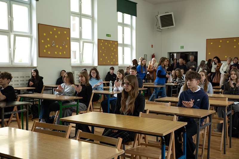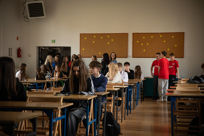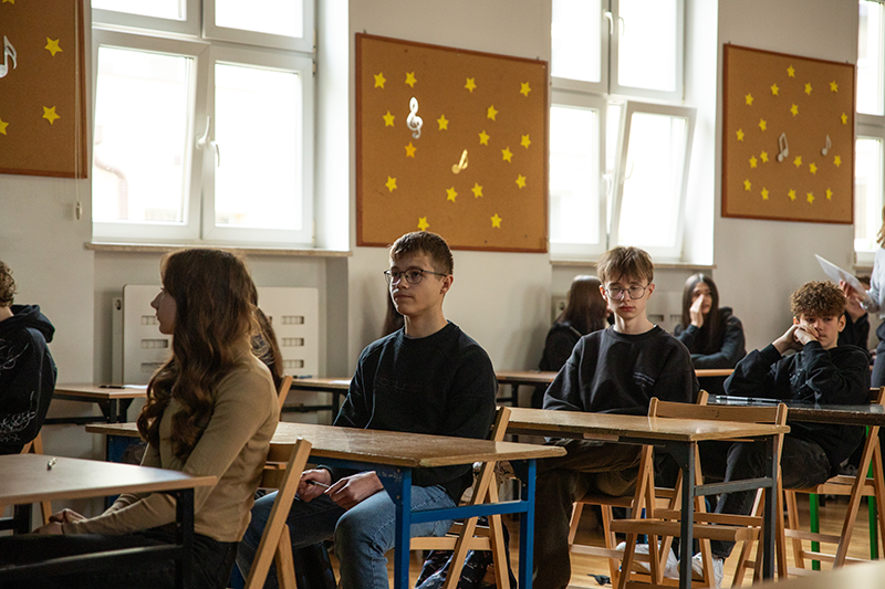 Uczestnicy konkursu mieli również okazję zapoznać się ze szkołą, jej strukturą oraz atmosferą, integrując się z obecnymi uczniami szkoły.
