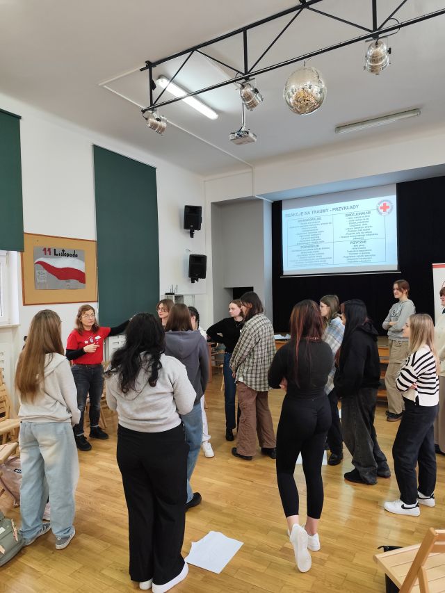 W Zespole Szkół nr 2 odbyły się warsztaty poświęcone udzielaniu wsparcia psychologicznego zorganizowane przez Rejonowy Oddział PCK w Lubartowie. Uczniowie dowiedzieli się, jak rozpoznawać osoby potrzebujące pomocy, jak pomagać im w poradzeniu sobie z silnymi emocjami, jak aktywnie słuchać oraz łączyć się z siecią wsparcia. Podczas zajęć uczestnicy brali udział w scenkach i praktycznych ćwiczeniach, dzięki którym mogli przećwiczyć zdobytą wiedzę w bezpiecznych i wspierających warunkach. Warsztaty spotkały się z dużym zainteresowaniem i zachęciły młodzież do większej uważności i empatii wobec innych.